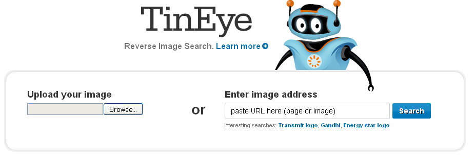 Tineye can do the same reverse image search but a little different, you have to click the browse button and then upload an image rather than dragging it to the search box like Google search. Take a look at the screen shot below.